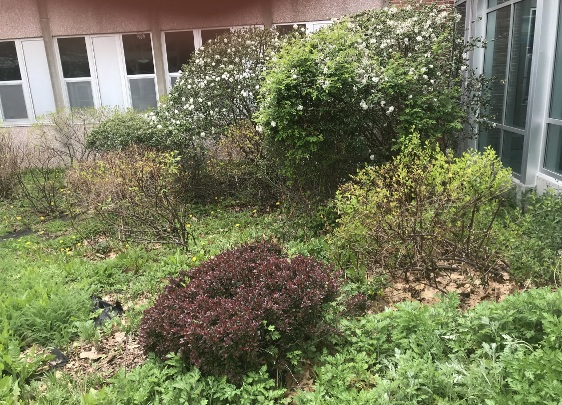 The courtyard at NSHS has been a wonderful space for students to take lunch or a break during the day. The Grounds Committee has worked hard to clean up the space and the city of Newton did their part by clearing the weeds, laying down landscape fabric, and delivering mulch. Now it is our turn!
